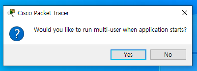 10. 패킷트레이서가 실행, "Would you like to run multi-user~" 에서 No 선택