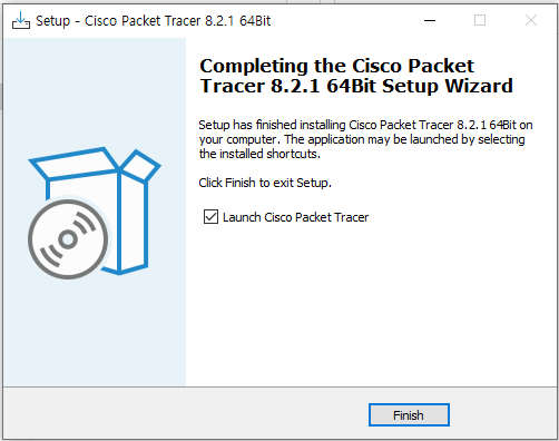 9. 설치 완료, Finish (창 종료 후 패킷트레이서가 자동으로 실행된다.)