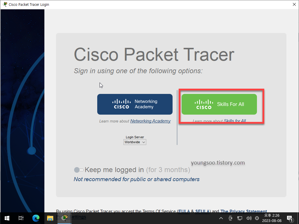 1. 패킷트레이서 설치 파일을 실행